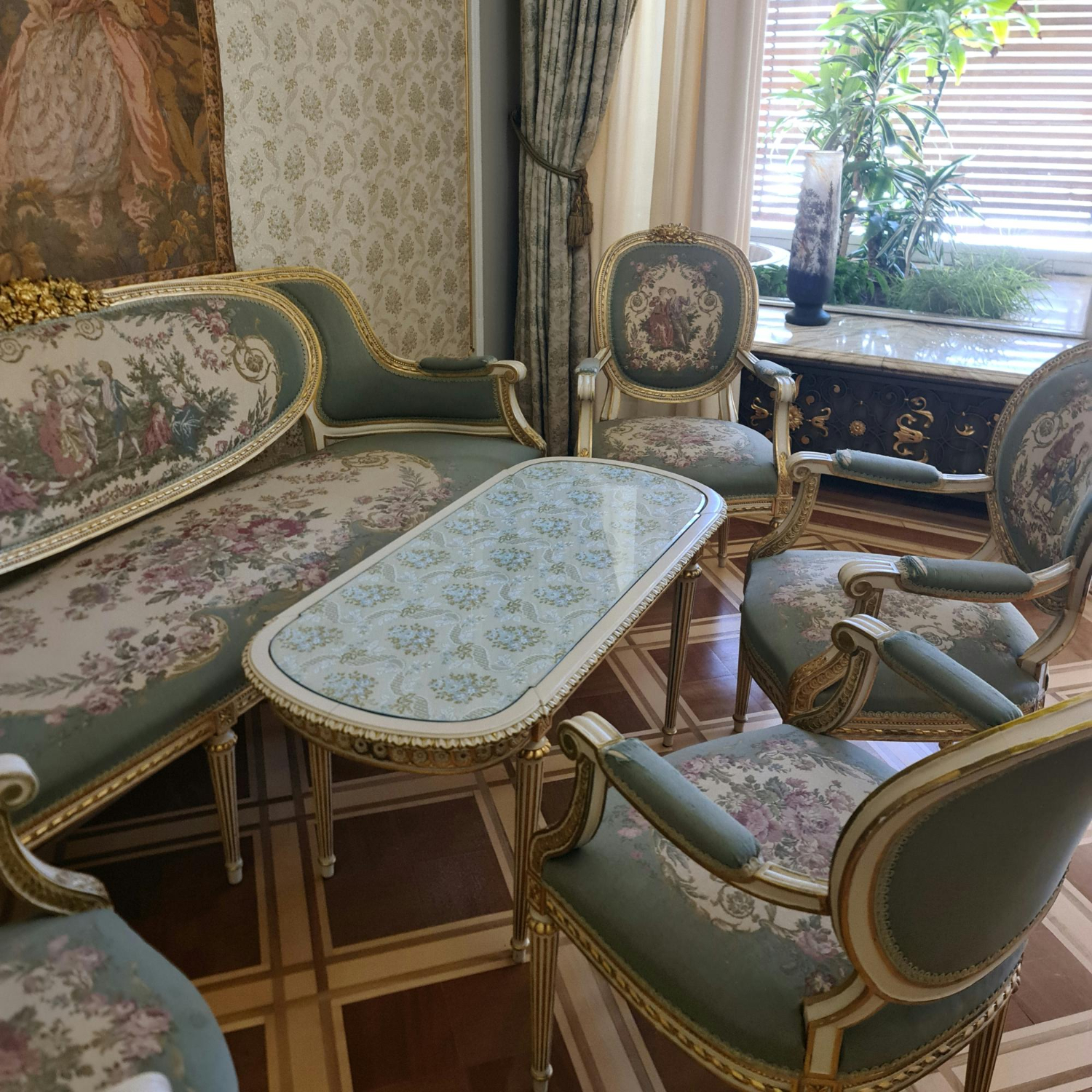 Tapisseries et mobilier ancien (tables, chaises, fauteuils, meubles)